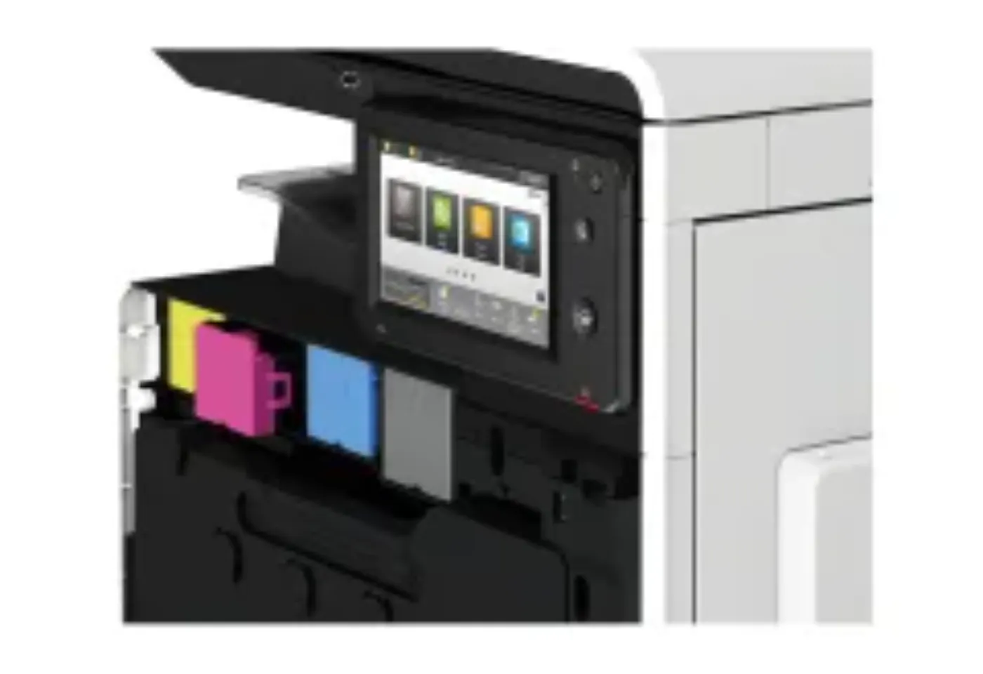To reduce waste and help you achieve your environmental goals, all toner cartridges remain locked in place and are only replaced once all the toner has been consumed – thereby ensuring efficient use of toner. Because you can tell at a glance when cartridges are empty, they are fast and easy to replace.
